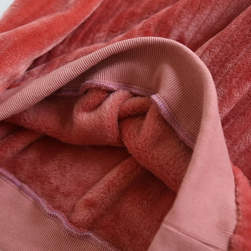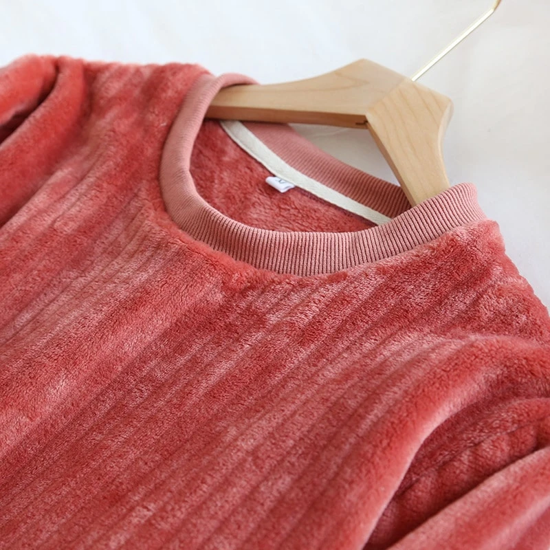 Notre ensemble de pyjama en peluche donne l’impression d’un velours côtelé avec son effet de matière texturée. Ce tissu donne au pyjama une allure très douillette et on a envie de se glisser dedans pour rester se détendre à la maison. En plus d’être doux, ce pyjama vous gardera bien au chaud que ce soit pour cocooner ou pour dormir. Sa coupe étudié pour le confort va ravir les adeptes des moments de détente cosy.