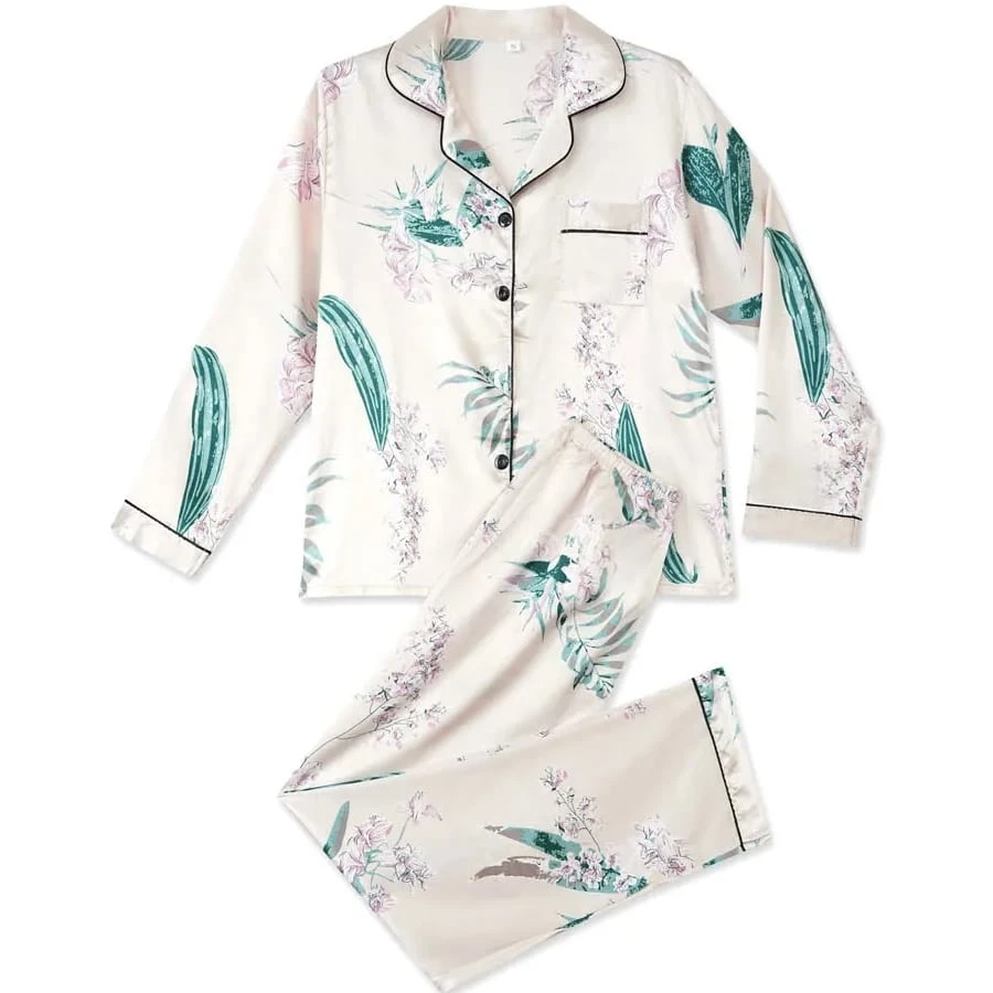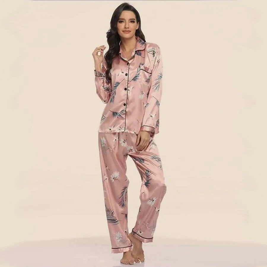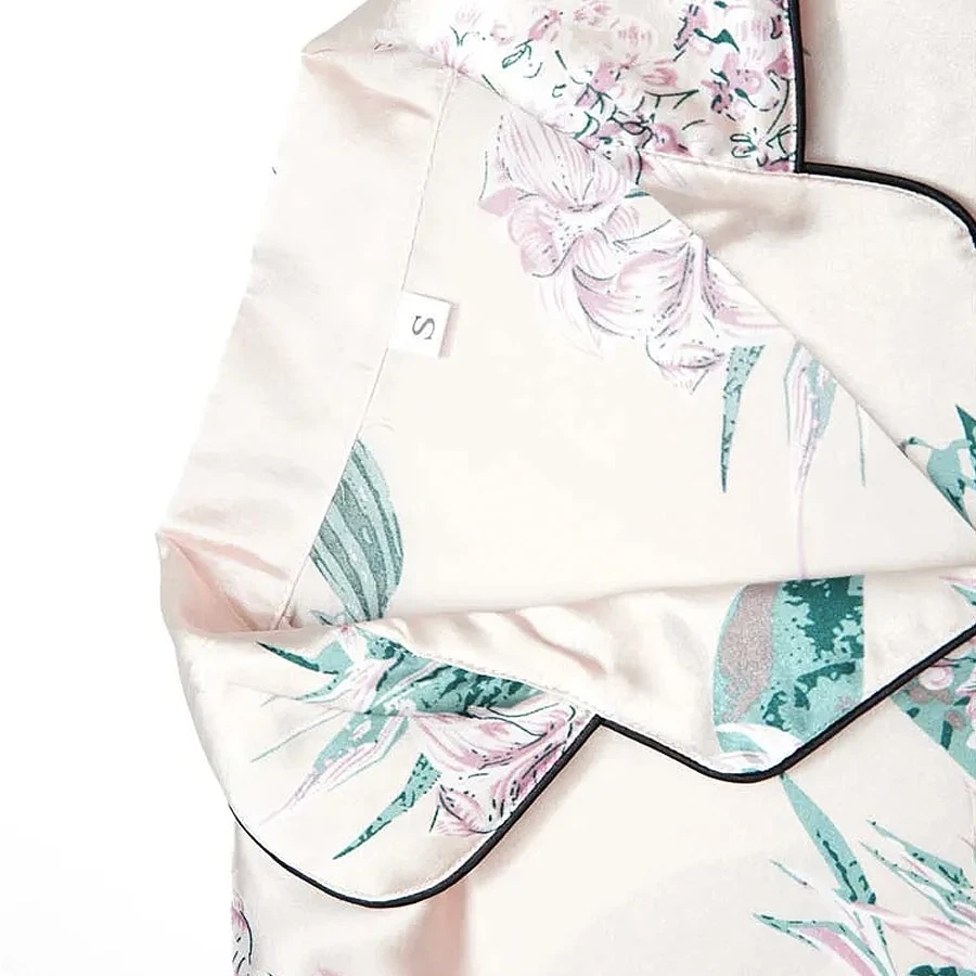 En plus d’être très confortable par sa coupe et ses détails, ce pyjama est aussi très agréable à porter grâce à son tissu. LE tissage satin permet de lui donner son côté brillant qui apporte une touche d’élégance mais rend également le tissu assez extensible. Vous allez adorer sa sensation sur la peau. Contrairement à ce que l’on peut penser, en portant un pyjama en satin vous ne glisserez pas dans vos draps, vous serez juste envelopper de plus de douceur.
