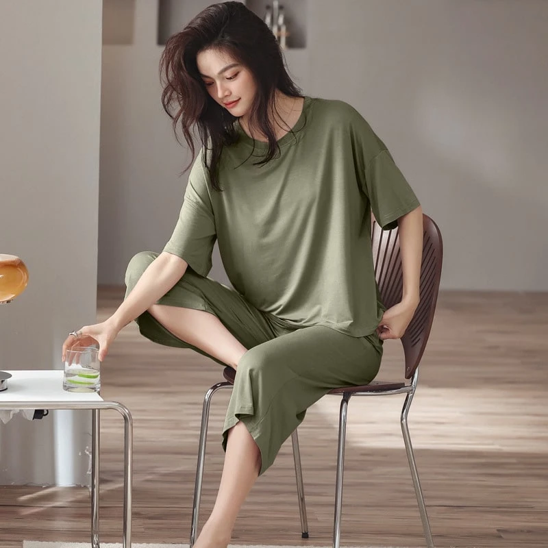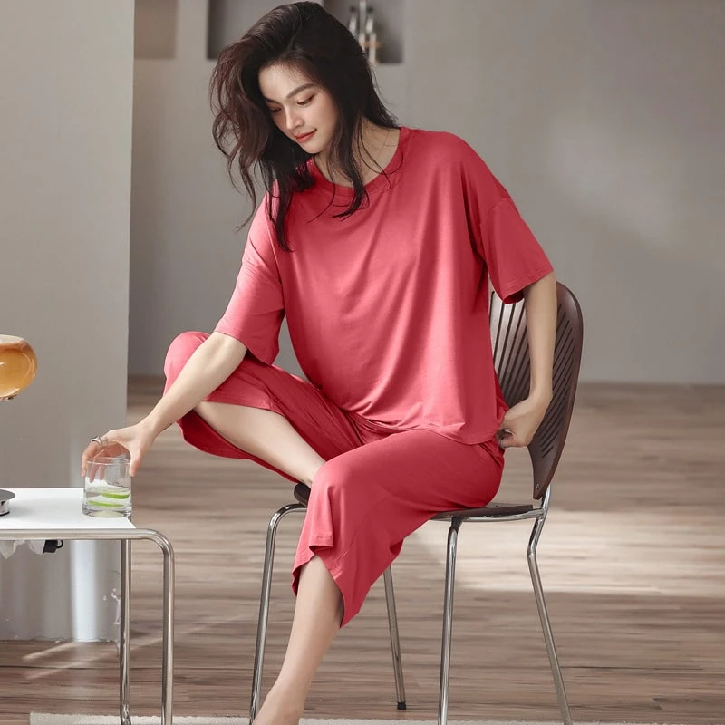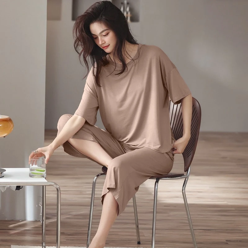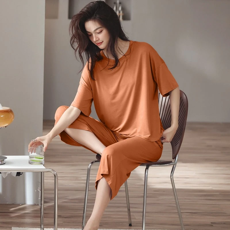 Le t-shirt a des manches courtes larges qui arrivent quasiment au coude, un col rond et une coupe ample pour vous offrir le plus grand confort. Le pantalon avec une coupe ample également, et un élastique à la taille qui maintient le bas sans trop vous serrer. En essayant cet ensemble vous n’aurez plus qu’une envie, rester chez vous pour ne plus jamais le quitter.
