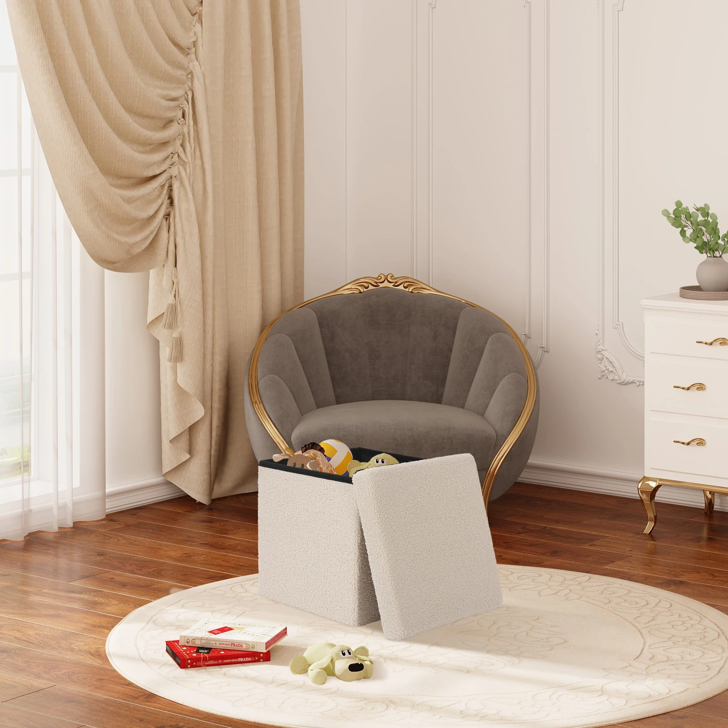 Son revêtement en peluche effet peau de mouton apportera la touche cocooning à la pièce où vous l’installerez. Tout doux et très cosy, le couvercle de notre pouf est rembourré en mousse pour une assise confortable. Ce pouf multifonctions trouvera aussi bien sa place dans votre salon, que dans l’entrée ou dans votre chambre pour une jolie touche de douceur et un accessoire très pratique.