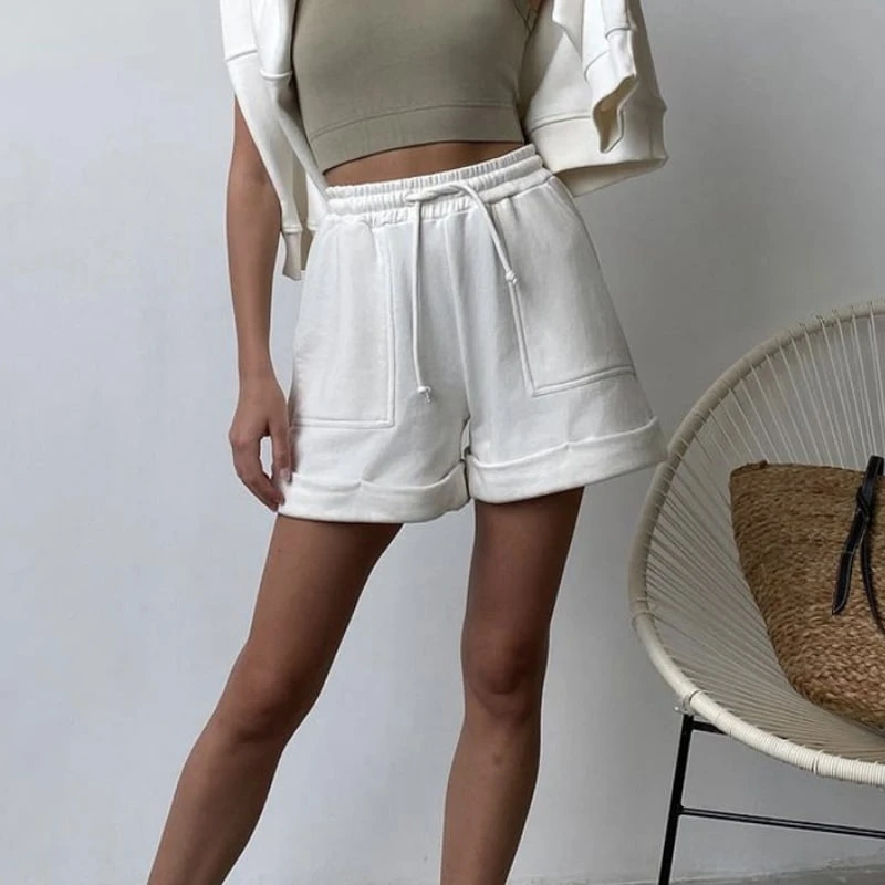 Un short ample pour le confort, serré à la taille avec un cordon pour le style. De large poche pour y glisser vos mains et vous donner une allure cocooning.